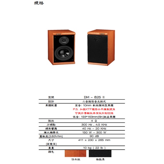 【KTF】DM-825 書架型喇叭 (木紋/對) 全新公司貨