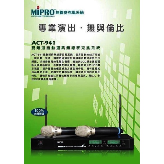 【MIPRO 嘉強】ACT-941 /ACT-52H/MU-90音頭 手持2支無線麥克風組 贈多項好禮 全新公司貨