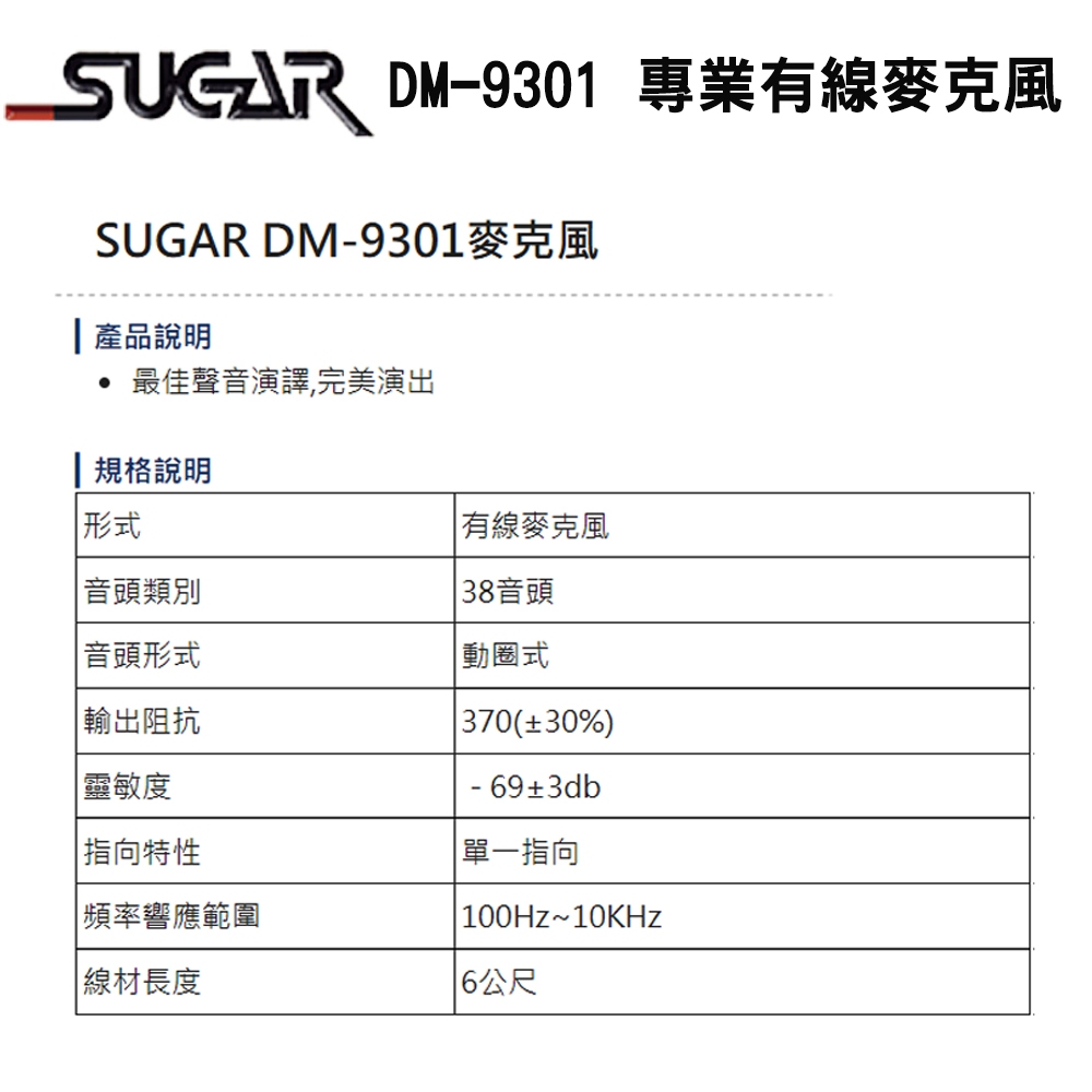 SUGAR DM-9301 動圈式/頂級專業有線麥克風 (單支售/含麥克風線/收納盒) 全新公司貨