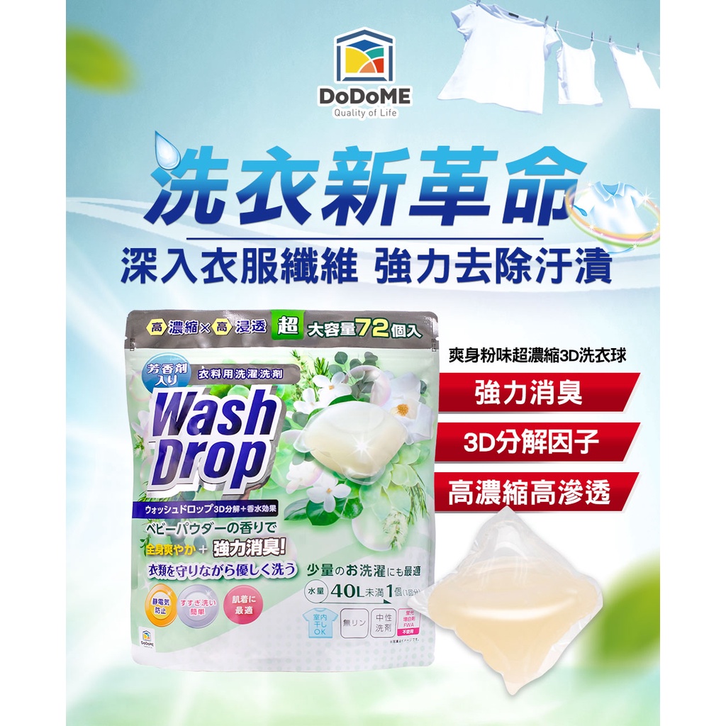 【DODOME】 爽身粉味超濃縮 即效 3D 洗衣球 (72入)