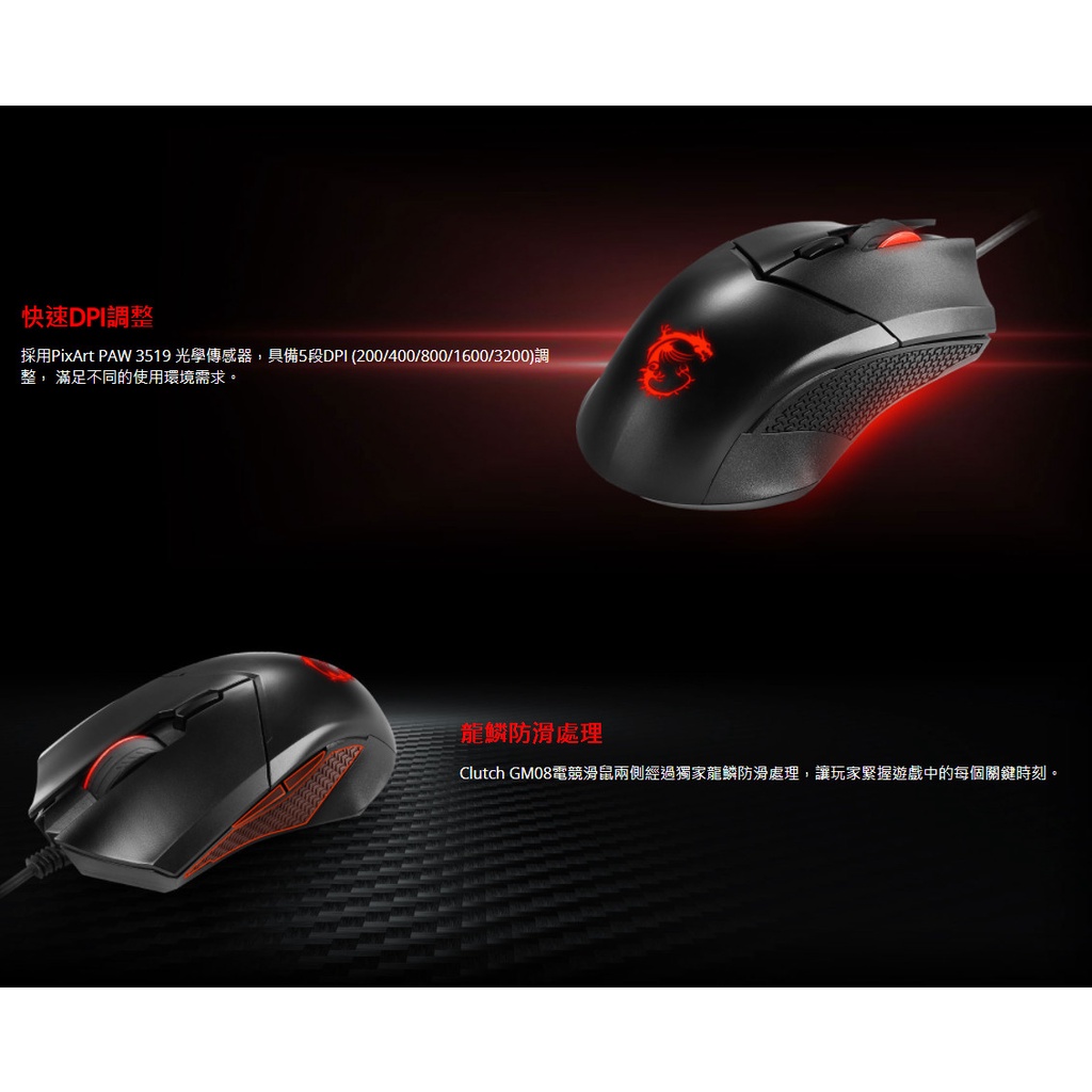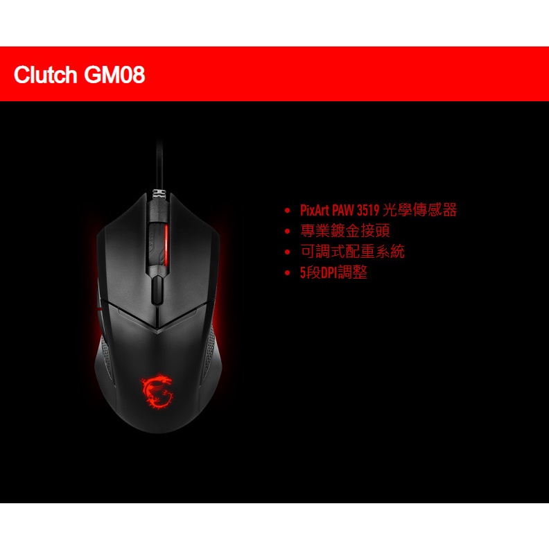 MSI 微星 Clutch GM08 電競滑鼠【JT3C】