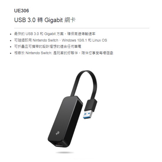 TP-Link UE306 USB3.0 轉 RJ45 Gigabit 外接網卡 乙太網路 支援Switch【JT3C】