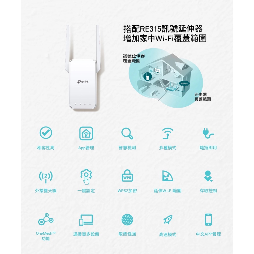 TP-Link RE315 AC1200 OneMesh 雙頻無線網路 WiFi訊號延伸器(Wi-Fi 訊號中繼器)