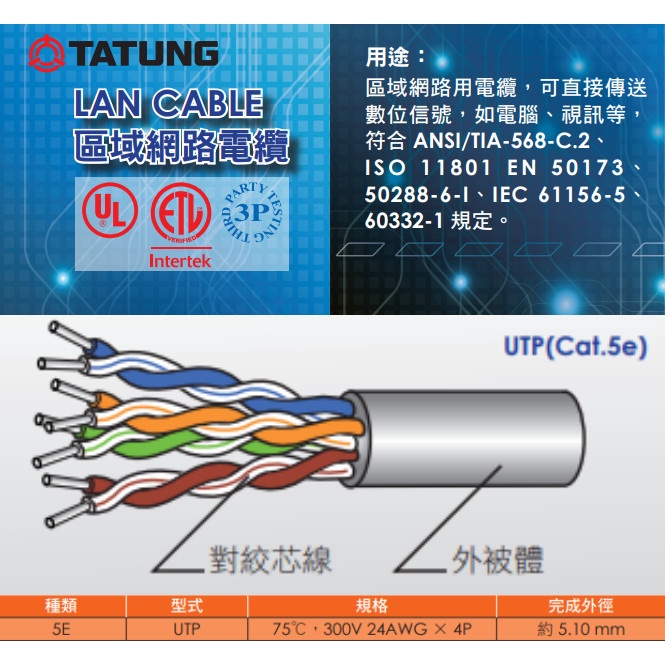 大同網路線 【CAT5E CAT.5E CAT-5e】 305M 米 公尺 灰白色 防偽貼紙【JT3C】