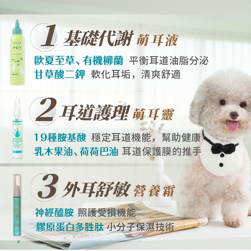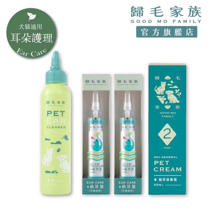 【歸毛家族】萌耳保衛 萌耳液+萌耳靈+營養霜 沐浴 貓 狗 寵物 耳朵 清潔 保養 進階修護 無抗生素 潔耳