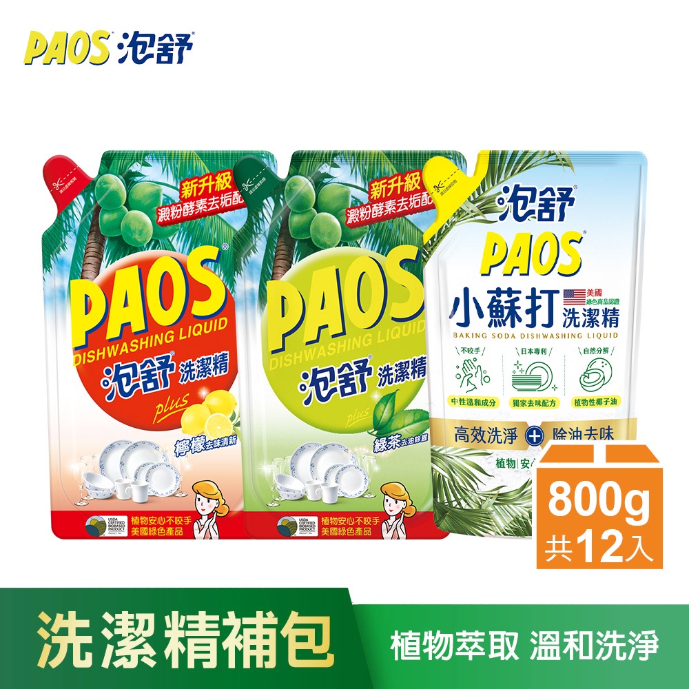 【泡舒】洗碗精補充包800gx12包(綠茶/檸檬/小蘇打) (任選箱購) 去油除腥 高效洗淨 除油去味 │耐斯