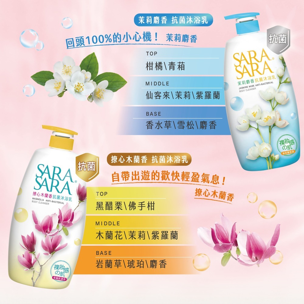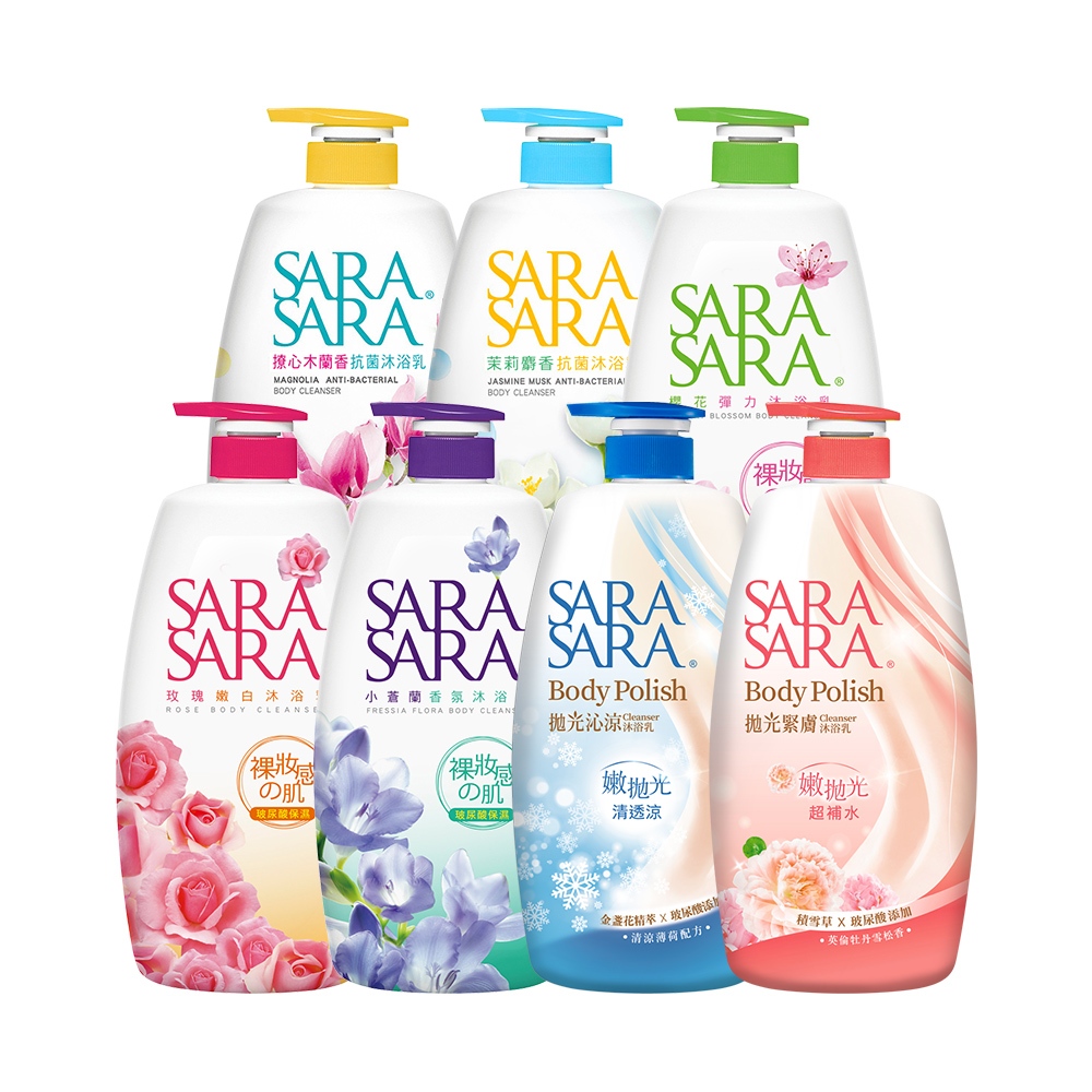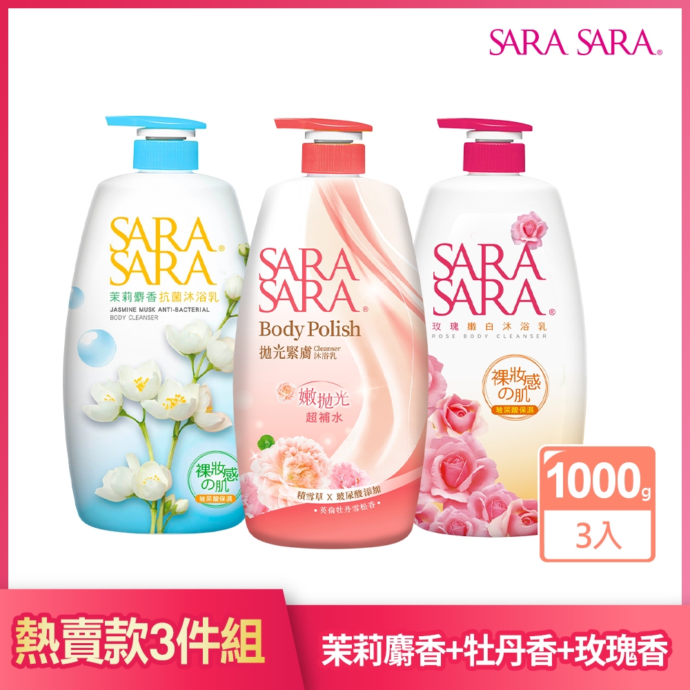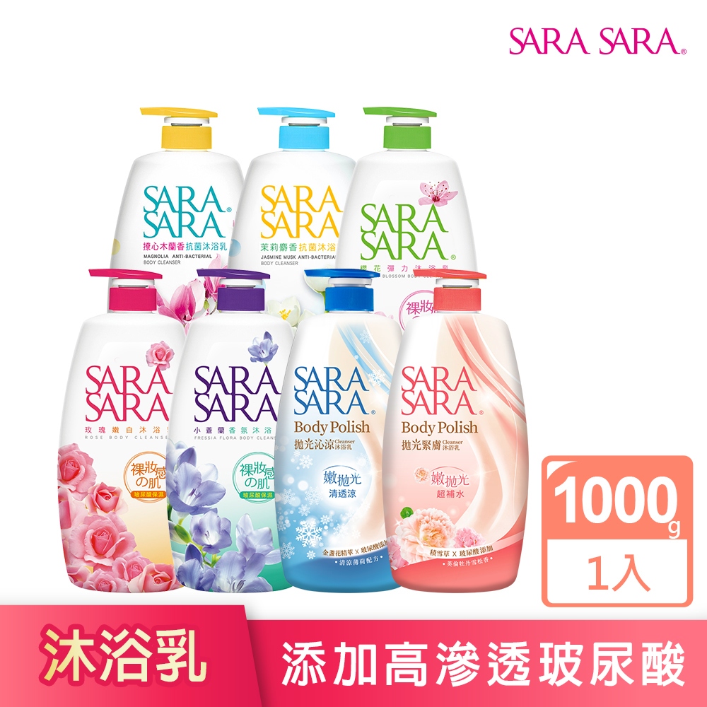 【SARA SARA 莎啦莎啦】沐浴乳1000g 1入/ 3入組 (拋光沁涼/緊膚/小蒼蘭/櫻花/玫瑰/木蘭香/茉莉)│