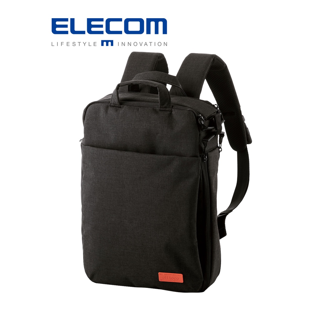 (出清商品)【日本ELECOM】 帆布多功能3WAY薄型 防潑水後背包 黑