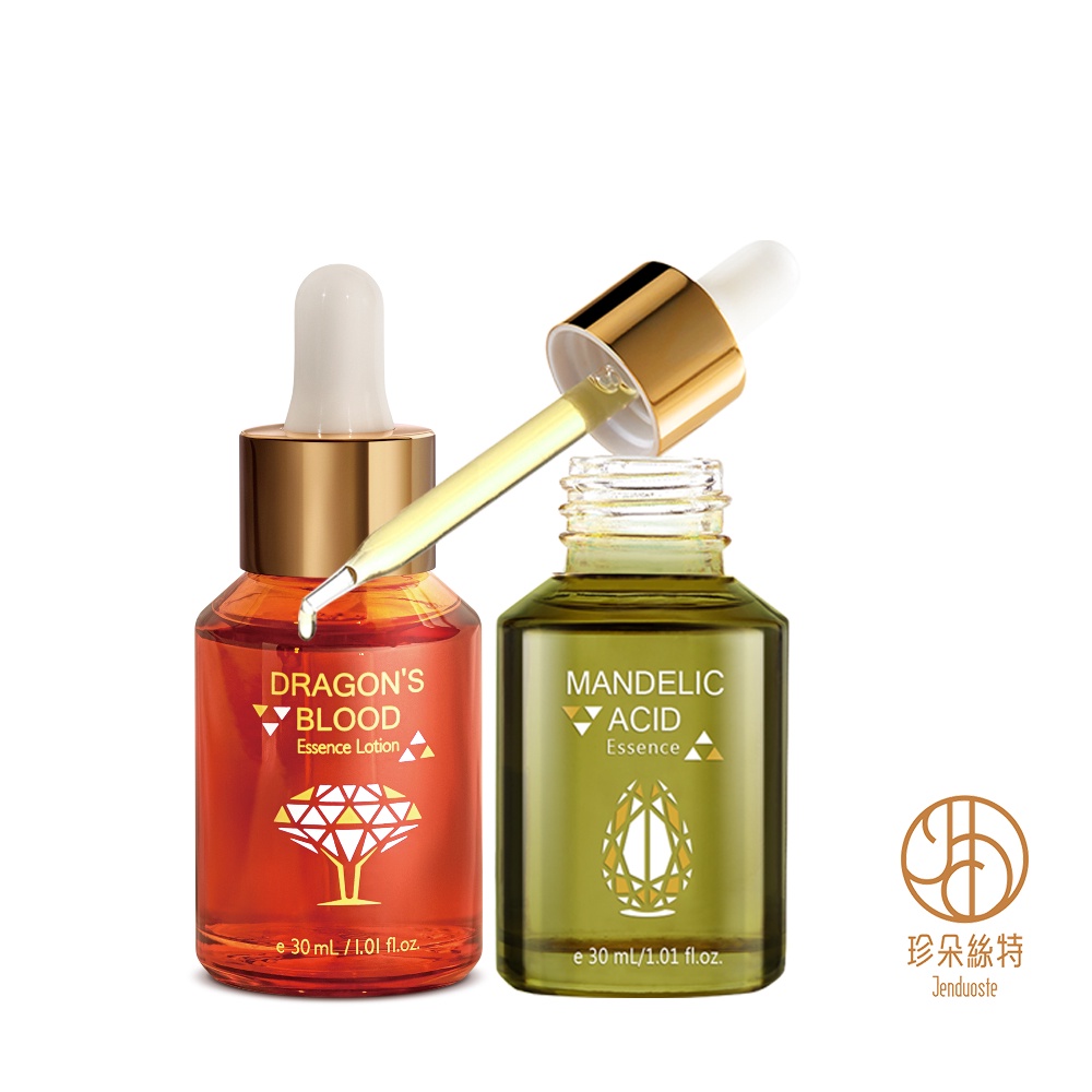 【珍朵絲特】苦杏仁酸煥顏露30mL+龍血求麗精華30mL(短效) 贈水搖滾面膜*3+極光白面膜*3