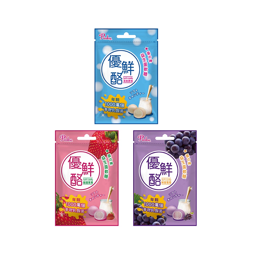 【Pinky】優鮮酪益生菌軟糖_夾鏈包 ( 原味、葡萄、草莓 ) 1盒、3盒 零食 糖果