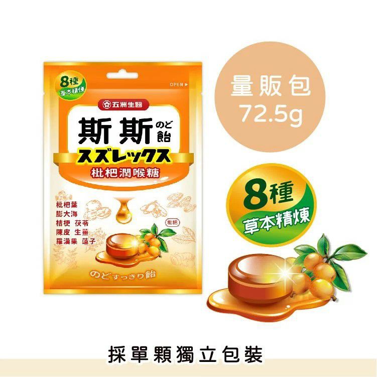 【五洲生醫】斯斯枇杷潤喉糖_量販包 1包、5包 零食 糖果