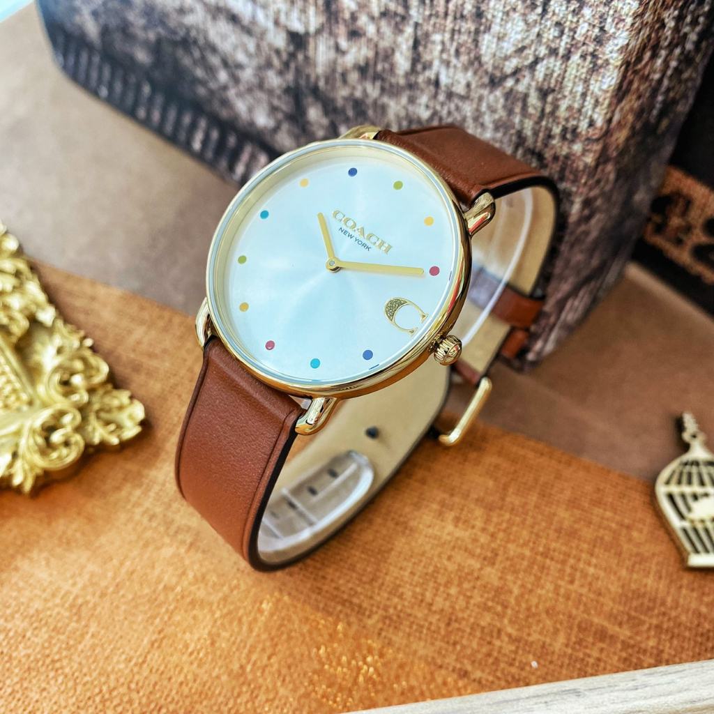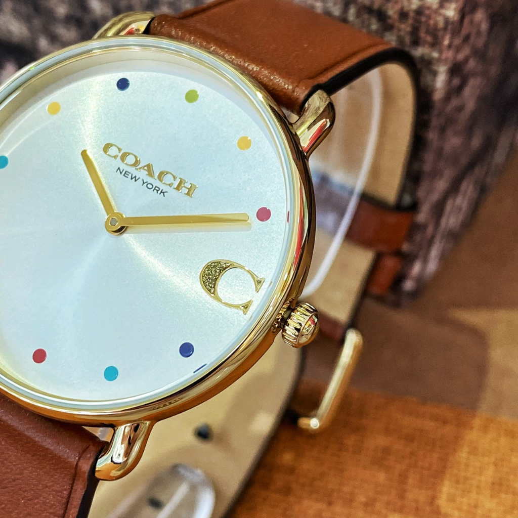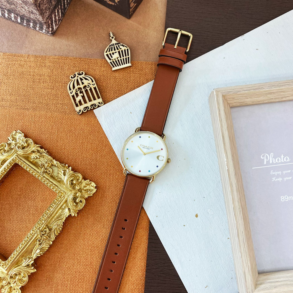 【COACH】彩點C LOGO皮革腕錶CO14504206 36mm 現代鐘錶