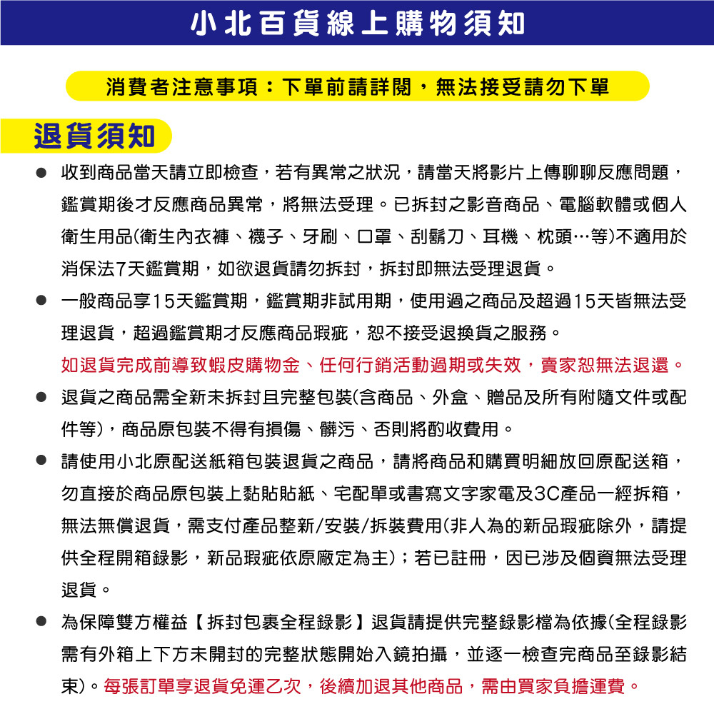 蝦皮商城 • 正品保障 • 15天鑑賞期 • 蝦皮放心買 • 蝦皮安心退