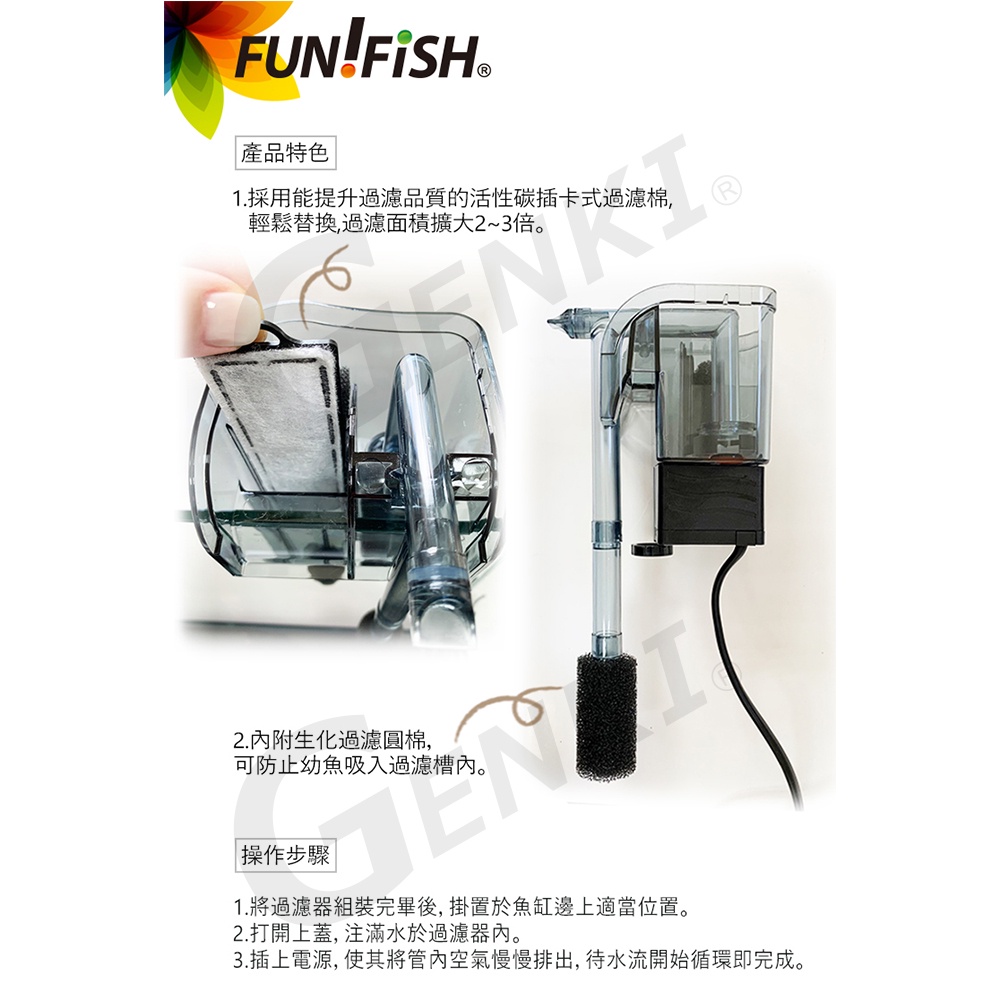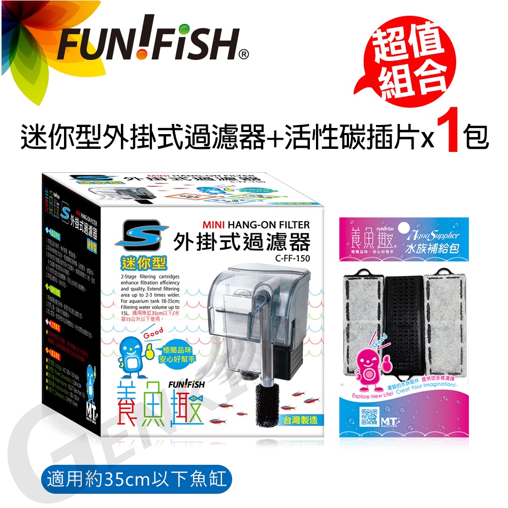 【FUN FISH 養魚趣】迷你型外掛式過濾器S+活性碳插片S*1包 (適用約35cm以下魚缸 水量約15L以下)