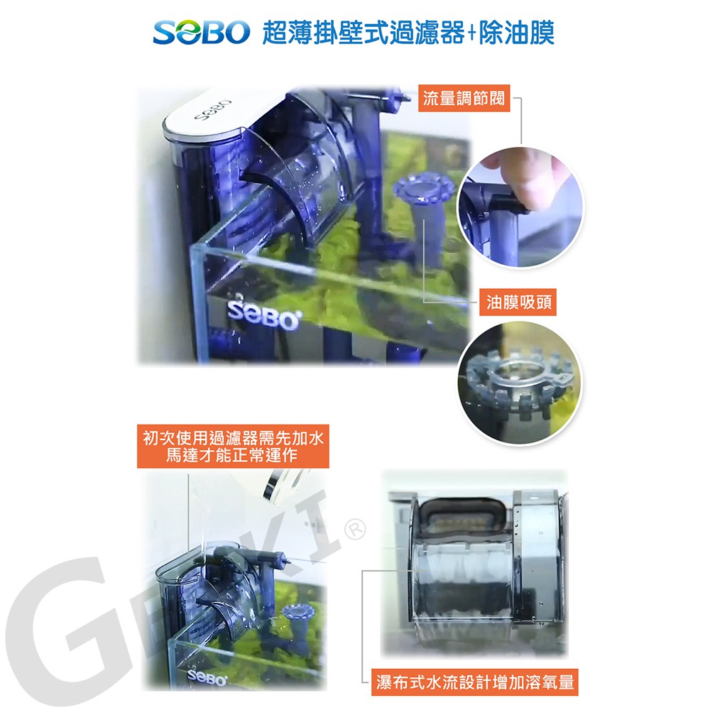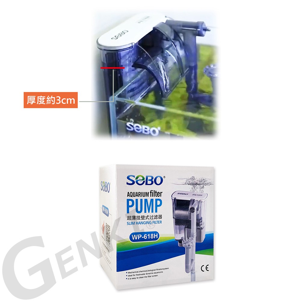 SOBO松寶WP618H-超薄掛壁式過濾器S+除油膜(最大出水量280L/H 適用1尺以下魚缸)