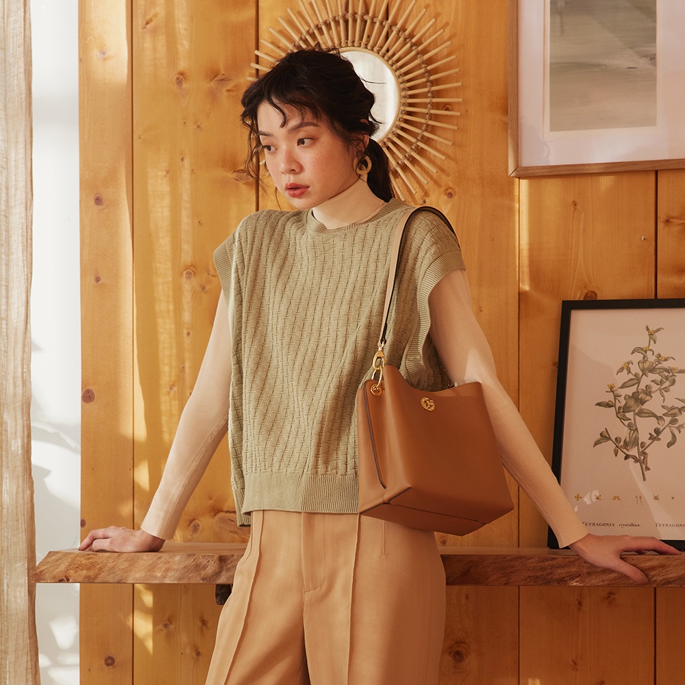 S'AIME 雙背帶橢圓轉釦小水桶包(S)
