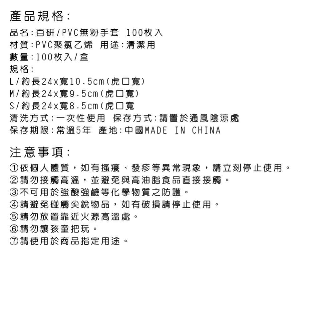 【UDiLiFE】 生活大師 百研PVC無粉手套100入/L/M/S 透明手套 塑膠手套 清潔手套 家事手套 PVC手套