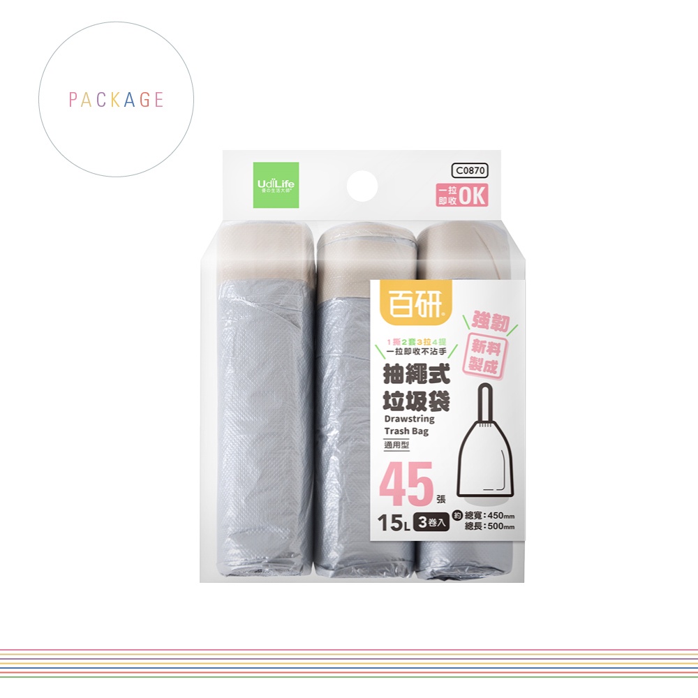 【UDiLiFE】 生活大師 百研抽繩垃圾袋15入 3卷 抽繩垃圾袋 垃圾袋 特厚垃圾袋 束口垃圾袋 垃圾袋 環保垃圾袋