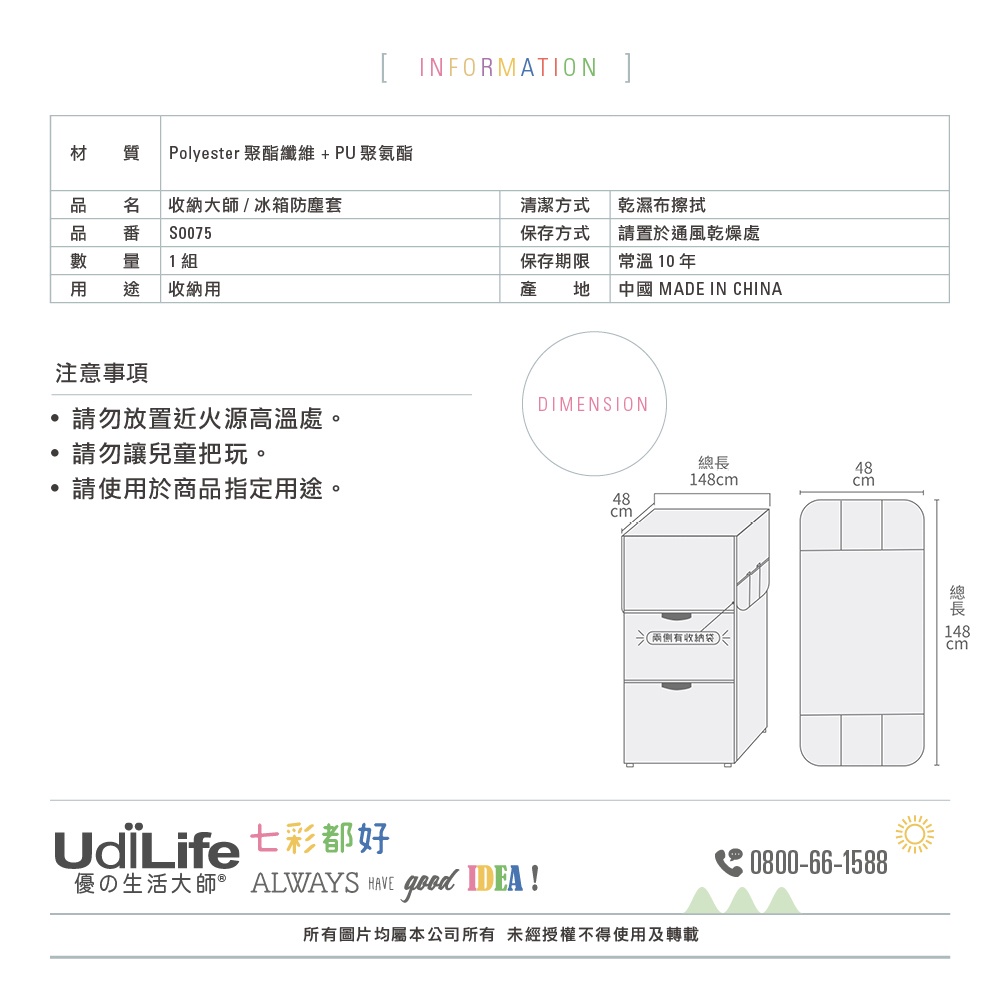 【UDiLiFE】 生活大師 收納大師冰箱防塵套 收納袋 置物袋 冰箱收納 冰箱蓋布 夜幕藍 晨霧灰