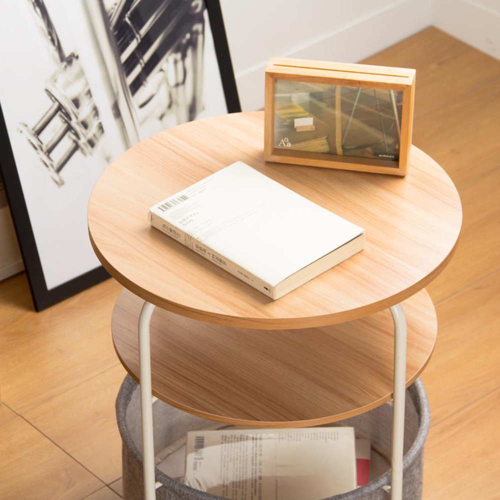 【UDiLiFE】 生活大師 品田日居澄圓邊桌附籃 日系質感 宿舍好物 臥室床頭桌 客廳茶幾 茶幾邊桌 床邊桌 床頭桌