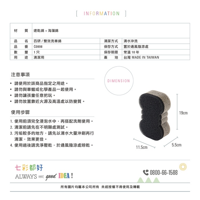 【UDiLiFE】 生活大師 百研雙效洗車綿 洗車專用 海綿 清潔工具 雙面清潔 洗車海綿 汽車美容 清潔海綿 清潔