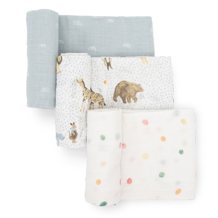 美國 Little Unicorn 純棉紗布巾三入組|包巾|精美禮盒裝(多款可選)【麗兒采家】