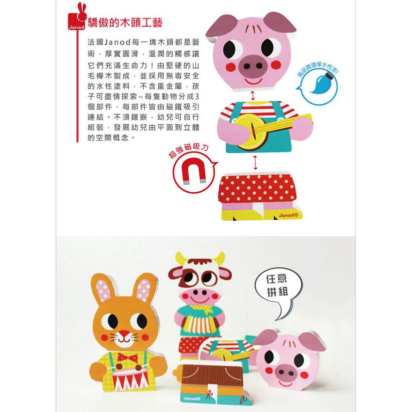 法國 Janod 磁性拼裝積木~動物樂團|磁性積木|聖誕禮物【麗兒采家】