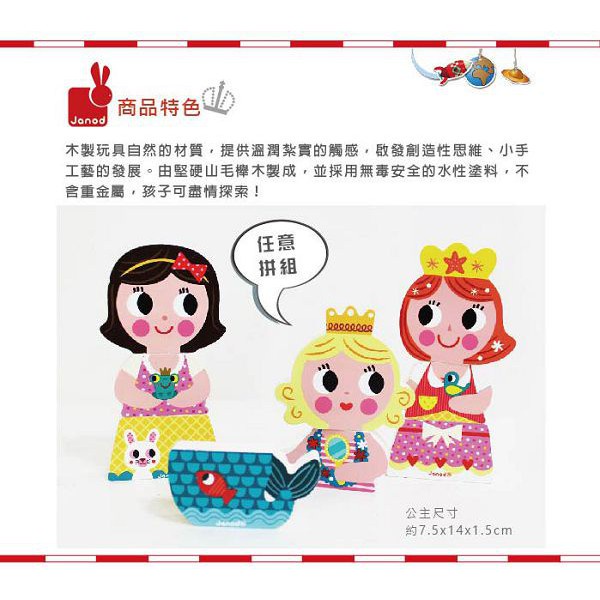 【麗兒采家】法國 Janod 磁性拼裝積木~童話公主