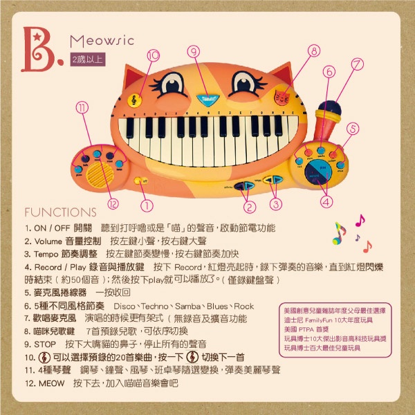 美國 B.TOYS 大嘴貓鋼琴【麗兒采家】
