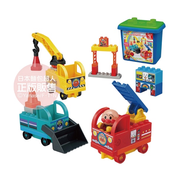 日本 麵包超人 交通工具積木樂趣桶(3歲以上)【麗兒采家】