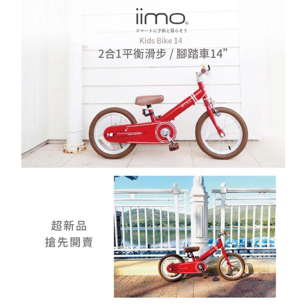 日本 iimo 二合一平衡滑步/腳踏車14吋(經典紅/時尚白)|滑步車|平衡車|學習車【麗兒采家】