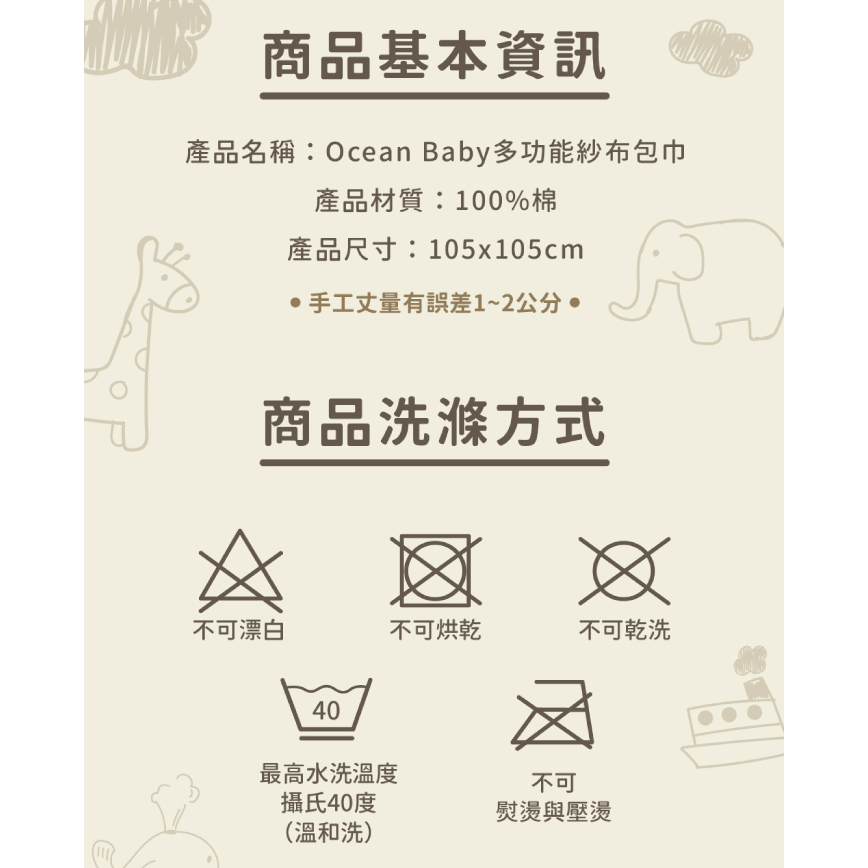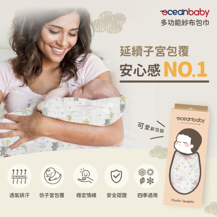 OceanBaby 多功能紗布包巾105x105cm(多款可選)紗布巾|透氣【麗兒采家】