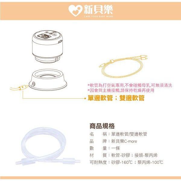 新貝樂C-more C1三合一雙邊電動吸乳器專用配件-單邊軟管【麗兒采家】