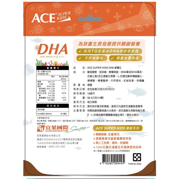 【任3件送12色色鉛筆】比利時 ACE SUPER KIDS 營養機能Q軟糖(4款可選)【麗兒采家】