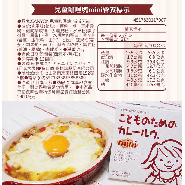 日本 CANYON 兒童MINI咖哩塊75g(一歲以上適用)【麗兒采家】