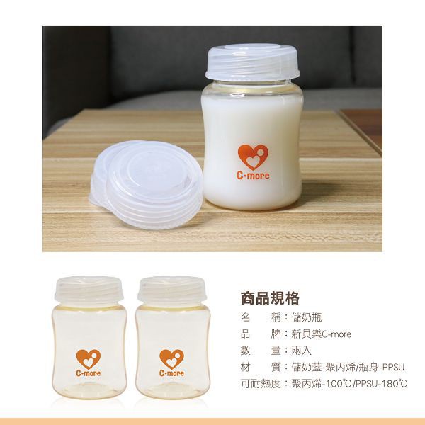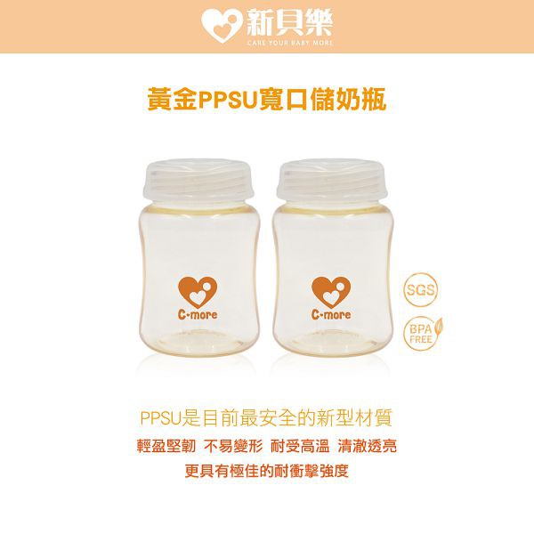 新貝樂C-more C1三合一雙邊電動吸乳器專用配件-PPSU寬口儲奶瓶 兩入【麗兒采家】