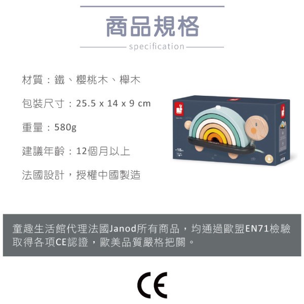 法國 Janod 北歐簡約木玩-彩虹龜托托【麗兒采家】