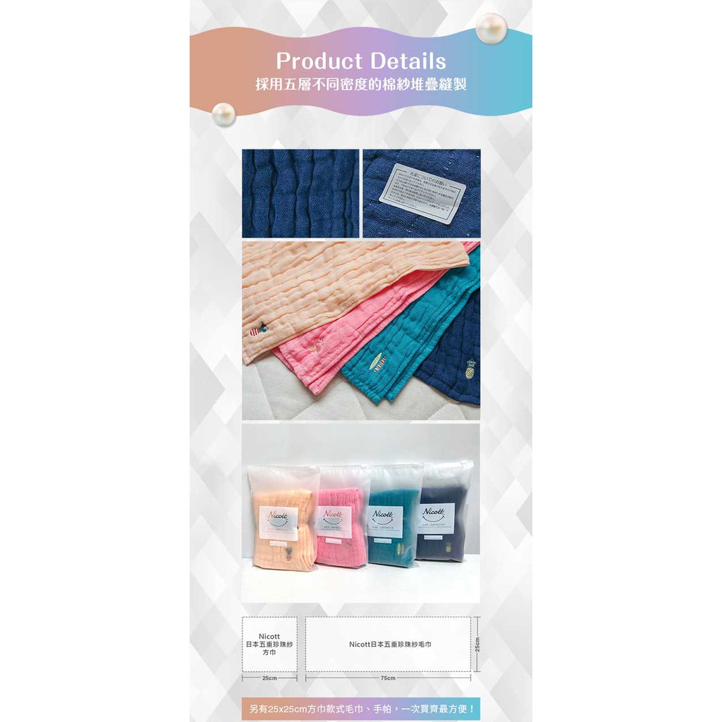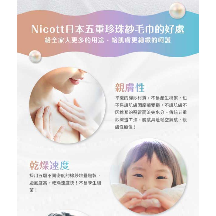Nicott 日本五重珍珠紗長巾|毛巾(4款可選) 【麗兒采家】