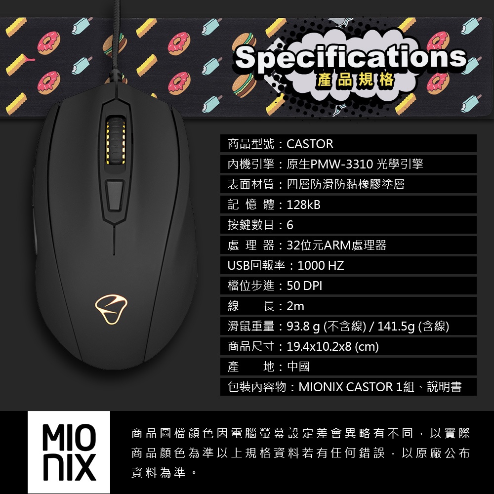 【MIONIX】Castor人體工學有線電競滑鼠