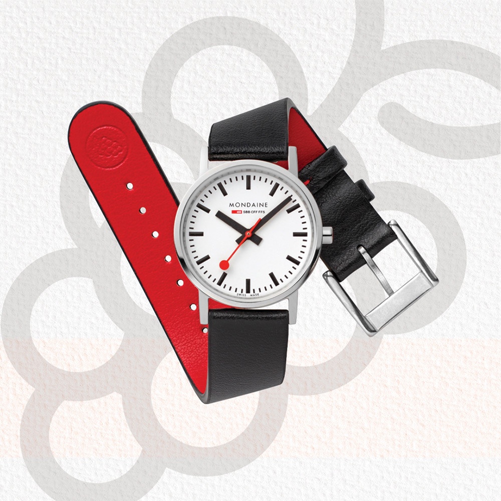 MONDAINE 瑞士國鐵 Classic Vegan Pure葡萄皮革腕錶 黑色 / 658316MV / 30mm
