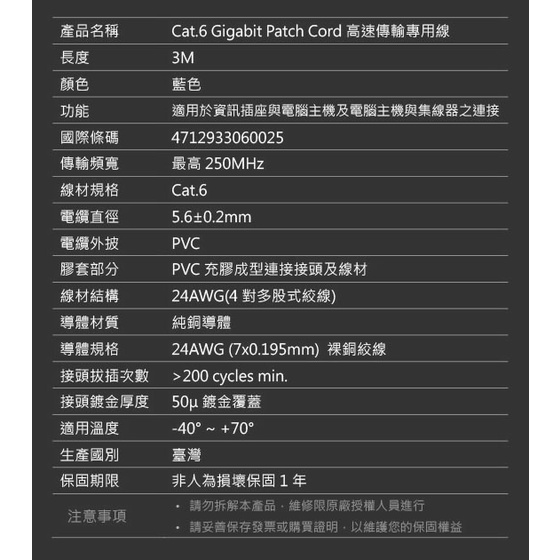 tamio Cat.6 3M 高速傳輸專用網路線 機房專用版 長度1M~20M可供選擇 MIT 臺灣製造
