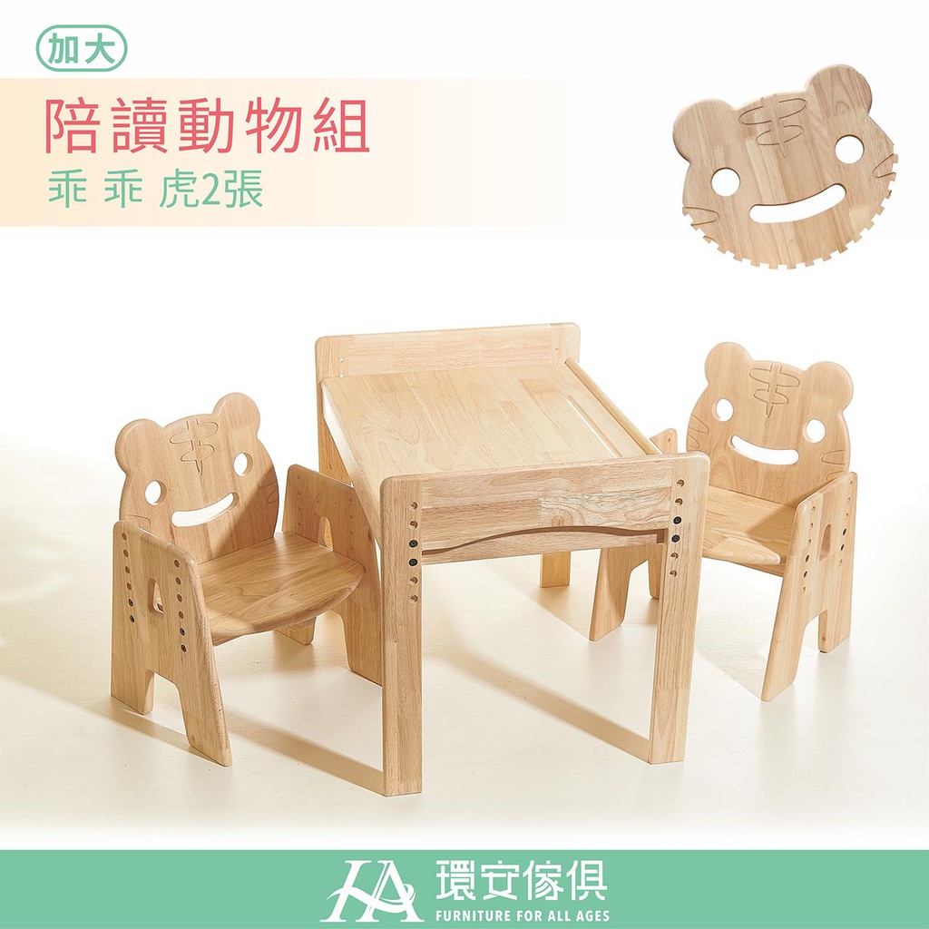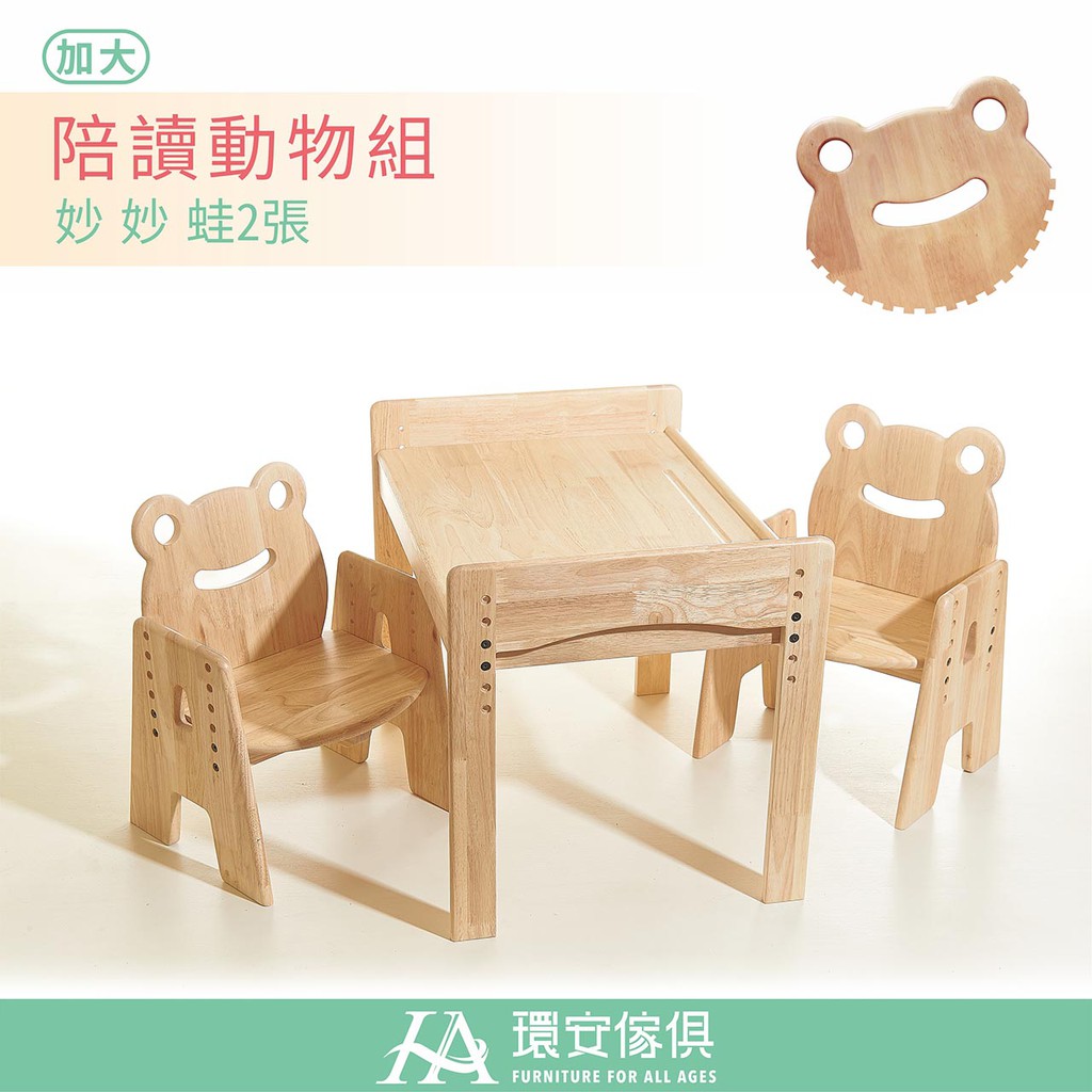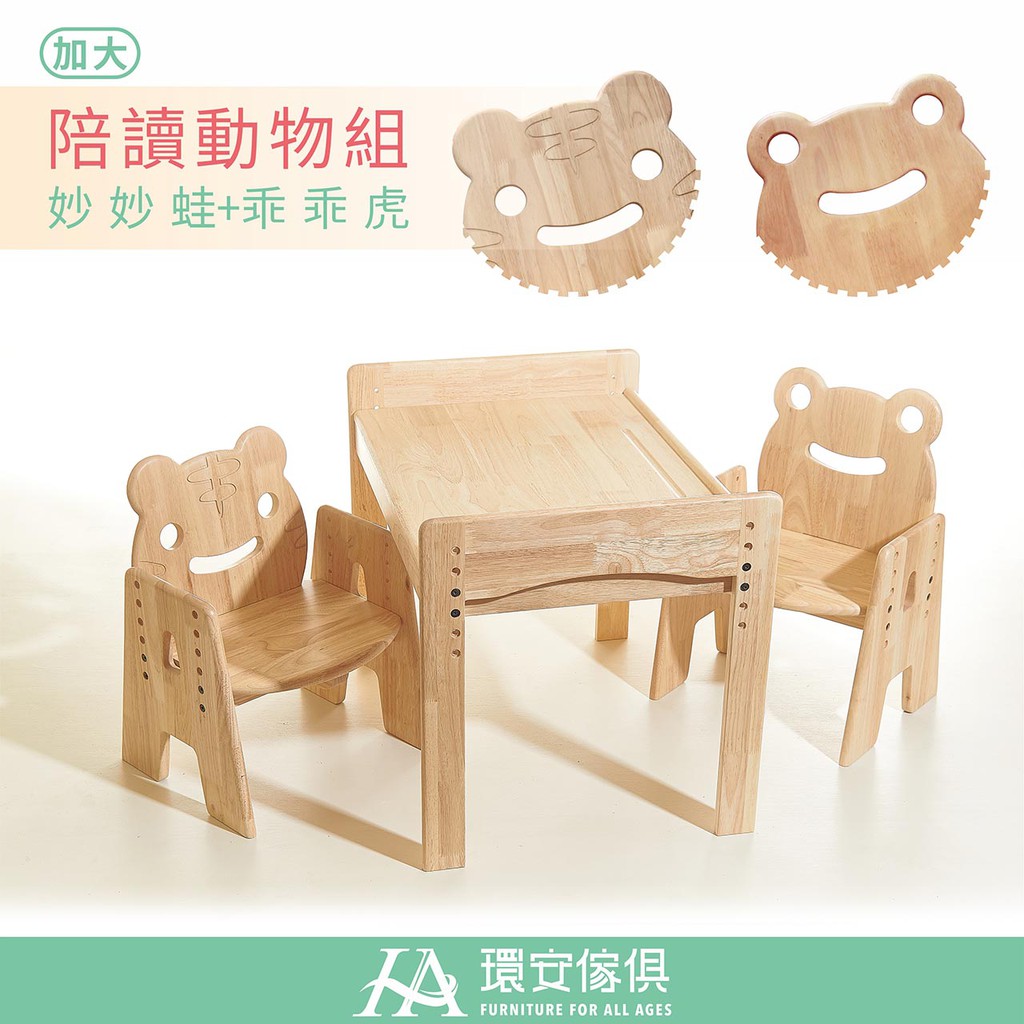環安傢俱 |加大款 幼兒成長桌椅組 / 動物陪讀椅 / 一桌二椅 | 兒童桌椅 兒童餐桌椅 實木桌 實木椅 共讀桌椅