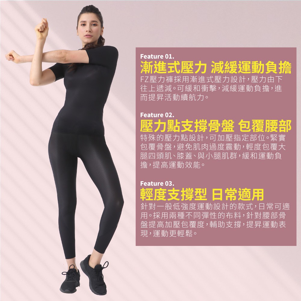 【FREEZONE】機能運動漸進式壓力長褲 女用-極透氣網布C1型(輕度支撐型/壓縮褲/瑜伽/慢跑/瑜珈/健身房)