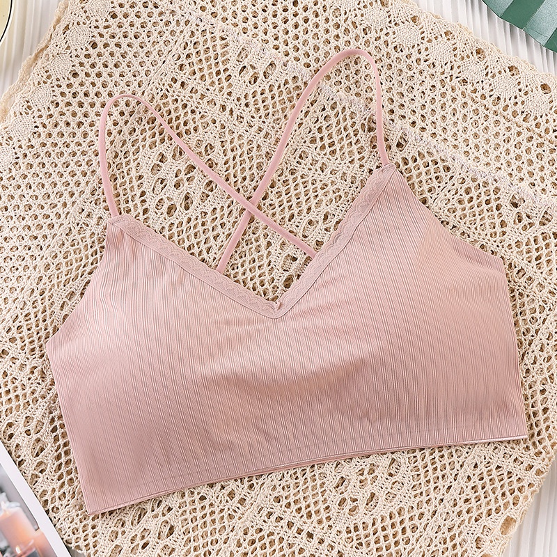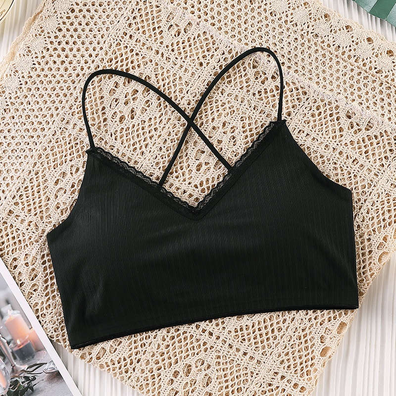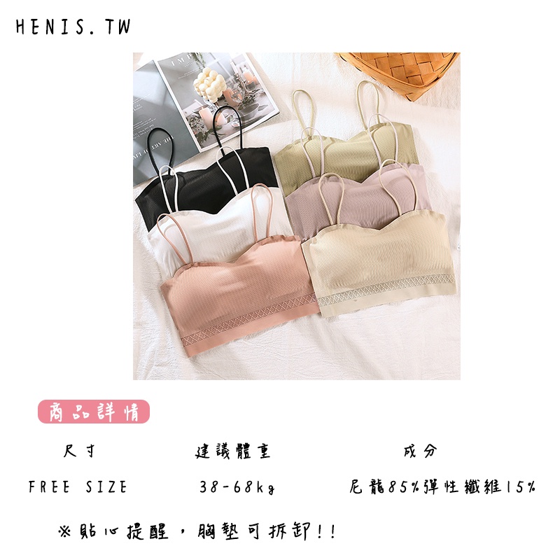 【現貨】HENIS 深V蕾絲 冰絲小可愛 bra top 裹胸抹胸 打底 細肩帶 無鋼圈 小可愛 涼感 罩杯小可愛 美背