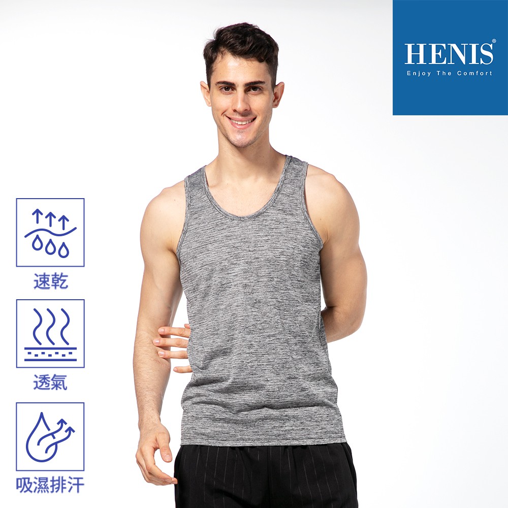 【現貨】HENIS 陽離子科技網眼坦克背心(3色可選)男 吊嘎背心 冰絲 涼感 運動 吸濕 排汗 透氣 舒適 吊嘎