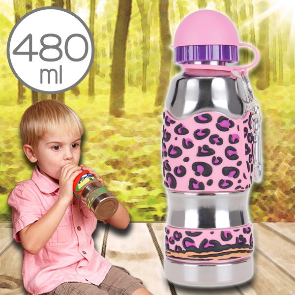美國【i.d.gear】兒童水壺/不鏽鋼/幼童水瓶水杯-粉嫩豹紋480CC B-2MST034