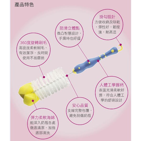 【NIP】德國製 嬰幼兒可掛式奶瓶刷 尼龍奶瓶刷 餐具奶瓶皆可用 小丁婦幼獨家代理