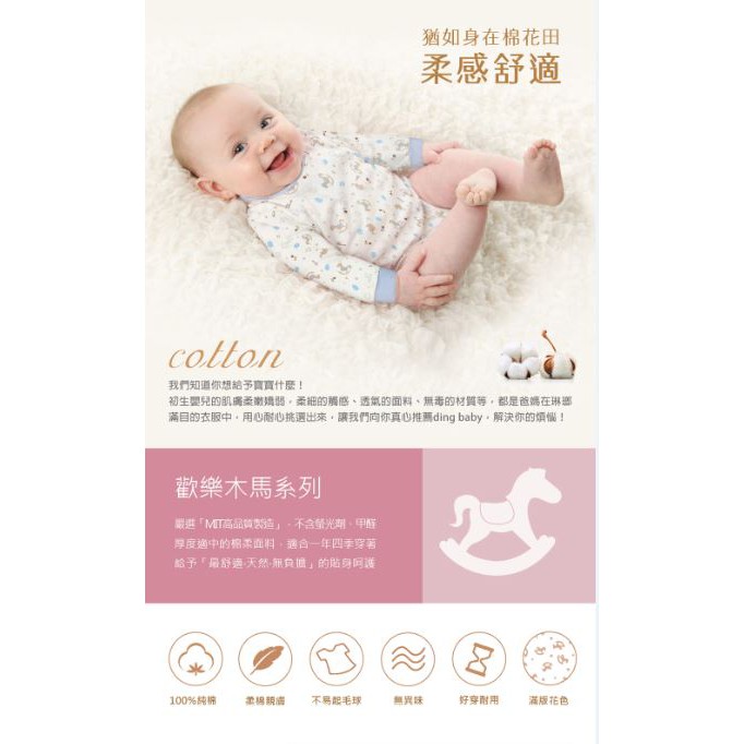 【ding baby】MIT台灣製 歡樂木馬蝴蝶裝三入組-藍(50-60cm) 台灣製造 小丁婦幼