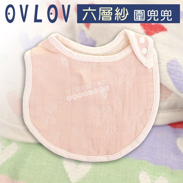 OVLOV 日本製六層紗圍兜/口水巾-和平鴿與樹葉淡粉 C-BB-4024-LPK