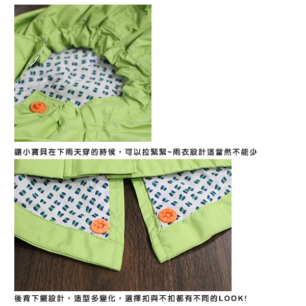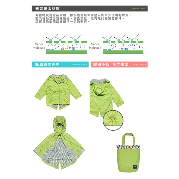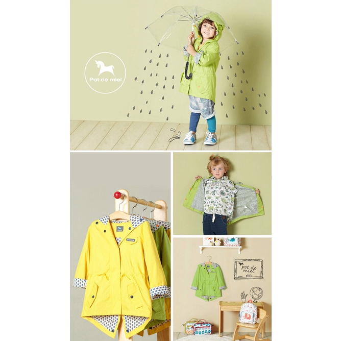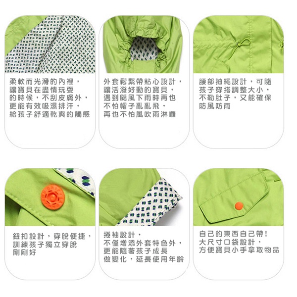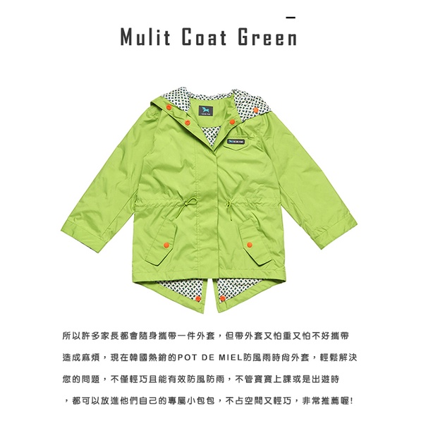 POT DE MIEL 兒童多功能防風防雨外套/附收納袋-綠 Q-MC-GREEN